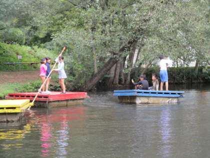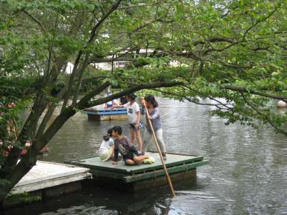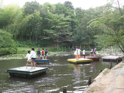 4年生 宿泊学習1日目 池遊び(1)〜いかだ遊び〜