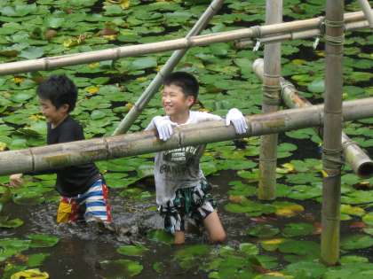 4年生 宿泊学習1日目 池遊び(2)〜池ジャングル〜