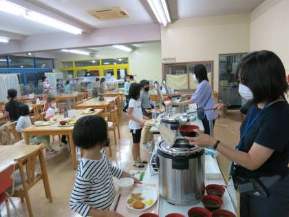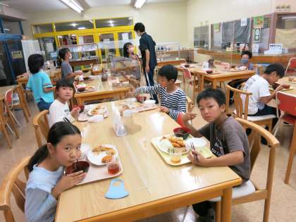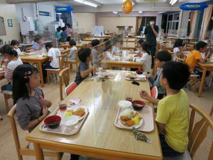 夕食はバイキング形式です。好きな物をたくさん食べられるのはうれしいですね。黙食を心がけました。
