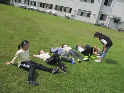 なんだか、芝生で寝転びたくなりました。風がふいていて気持ちよかったそうです。