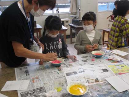 9月28日(水)1年生 図画工作科「スーパーボールづくり」