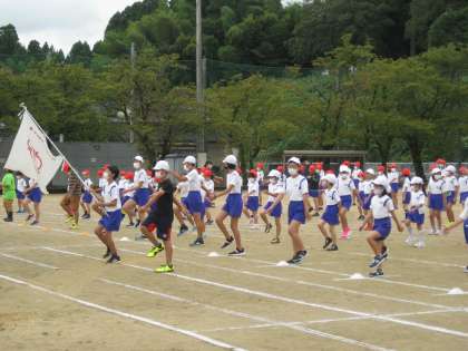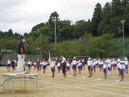 今日は雨がだんだん上がり、昨日できなかった運動会の予行練習を午後から行いました