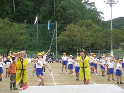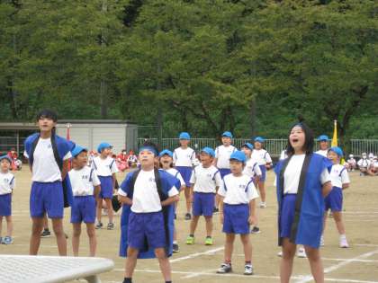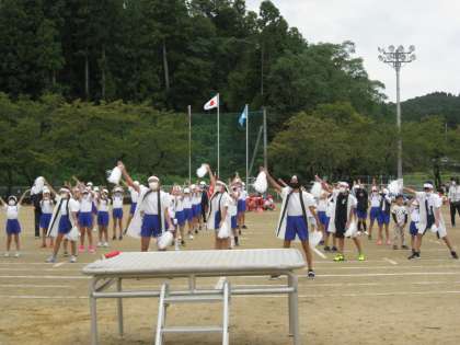 応援パフォーマンスも初めて、全員で見合いました。スローガン「団結して全力で楽しもう」のように、各団声を合わせ、スマイル!!