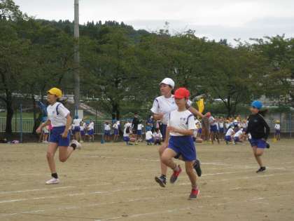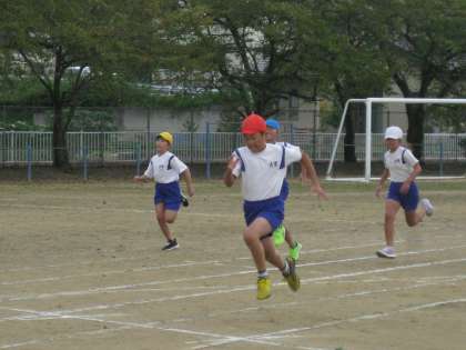 個人走です。今日は時間の関係で各学年2組ずつしか走れませんでしたが、体育の時間に頑張った成果を運動会当日に発揮しましょう。