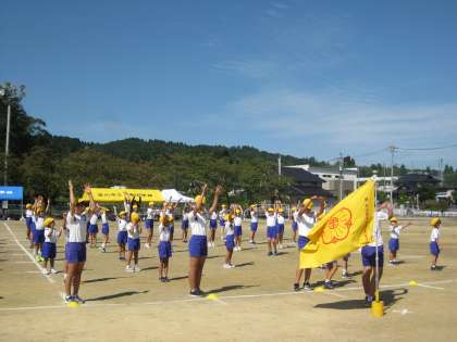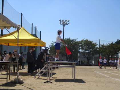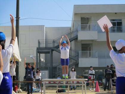 児童代表の言葉で、運動会成功を祝い万歳三唱を行いました。