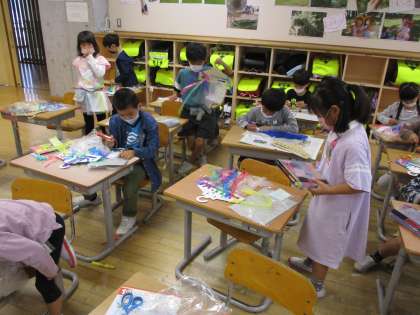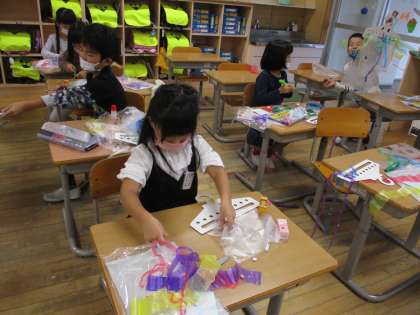 10月5日(水)1年生 図画工作科「ひらひらゆれて」