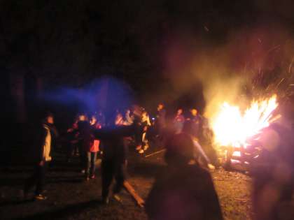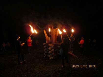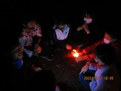 夜はキャンプファイヤーを行いました。副班長全員で火を灯し、綺麗な炎を見ながら楽しい活動を行いました。暗い中でわくわく、ドキドキする時間を過ごしました。