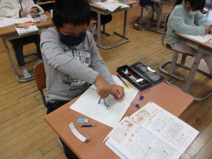 算数では、コンパスを使うのが上手になってきました。きれいな円や円を使った模様が描けるとうれしいですね。