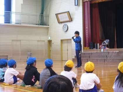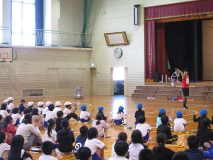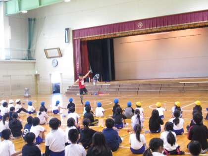 日本で唯一のプロのなわとびプレイヤーの生山ヒジキさんが学校へ来てくださいました。子供たちはとても楽しみにしていたようで、数日前から縄跳びに取り組む子供が増えてきていました。業間には、リズムに合わせて難しい技をたくさん披露してくださいました。