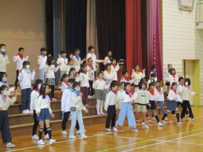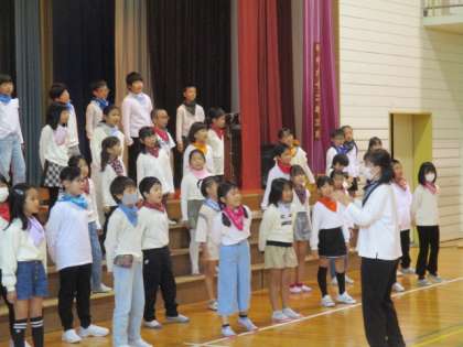 11月13日(日)3・4年生 学習発表会 心を一つに歌ったよ 公開日 2022/11/13 更新日 2022/11/13 3年生 「聴いている人にも笑顔になってもらうためには、どんなふうに歌ったらいいかな」と考え、今日まで3・4年生でたくさん練習を重ねてきました。会場のみなさんにしっかりと届くように、笑顔で楽しそうに歌う子供たちの姿はとても輝いていました。 友達と心を一つに歌うこと、みんなで一つのものをつくり上げることの楽しさ、素晴らしさを感じてくれていると嬉しいです。
