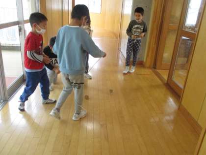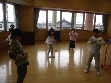 生活科の学習で、こまやけん玉、お手玉など昔からの遊びに挑戦しています。「いろいろな技ができるようになりたいな」「なかなかできないけど、できるようにもっと練習したいな」と子供たちはやる気満々です。