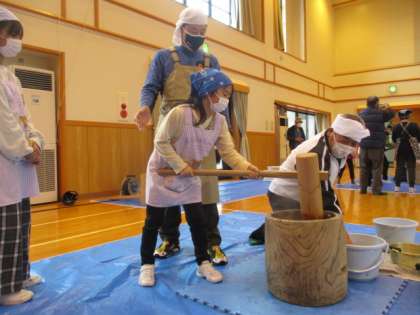 もちをつく子供たちの様子です。