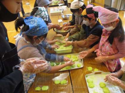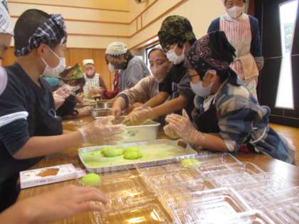 学校のみんなのために、丁寧に気持ちを込めながらもちをこねています。