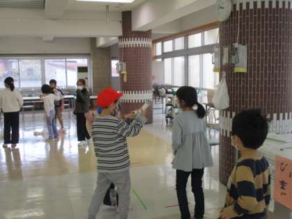 やさしく教えたい、うまくいかなかったら励ましたいなど、目当てをもって臨みましたが、どのように話しかけようかと戸惑う姿が見られました。時間が経つにつれ、すっかり打ち解けて、あちらこちらから歓声が聞こえました。