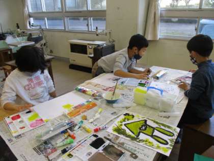 12月12日(月) 2年生 とろとろ絵の具でかく