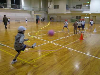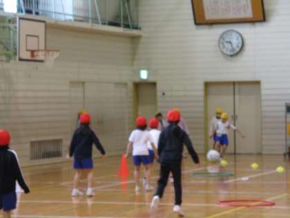 キックベースボールの試合を行いました。狙った場所にボールを蹴る練習から始めて、ゲームができるようになりました。遠くへ蹴って、3点を狙いますが、守備に阻まれて思うように点数につながらないこともがありました。判定はセルフジャッジです。勝ち負けと同じように、大切なことを学んだ子供たちでした。
