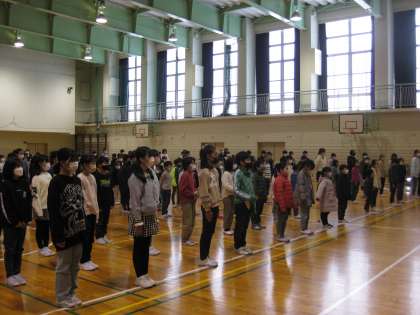 今朝は、とても寒く体育館も凍るような寒さでした。でも、用務員さんや担当の先生が、ヒーターを設置してくださり、温かい体育館になりました。ありがとうございました。