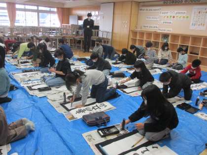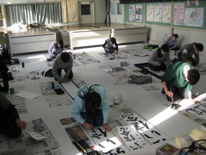 全校みんなが体育館に集まり、しいんと静かな中で書くのもよかったのですが、クラスの仲間と真剣な雰囲気をつくりながらの今年もいい雰囲気で書き上げました。