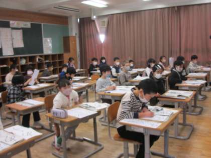 明日、登校したら、金賞・銀賞の張り紙がついているかどうか見るのも楽しみですね。張り紙があってもなくても、一人一人のがんばりや意気込みを担任の先生も書写を担当している先生も、校長先生も教頭先生も、一緒に感じながら見て回りました。
