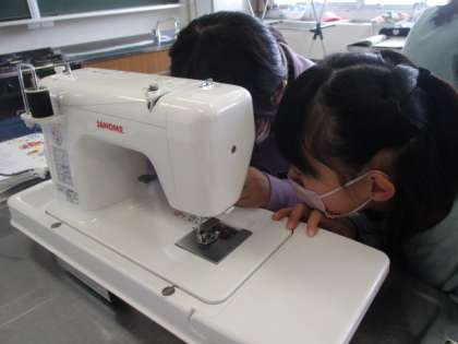 家庭科の学習では、ミシンの使い方を学んでいます。