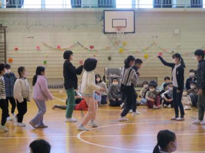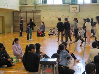 今日の業間から3限にかけて、6年生に感謝の気持ちを伝える集会を行いました。2年生は、6年生と一緒に8の字跳びに挑戦しました。気持ちを合わせることを意識して跳びました。2年生は、一緒に跳べてうれしかったと感想を言っていました。手作りのメダルを渡すときは、恥ずかしそうな子供たちでした。