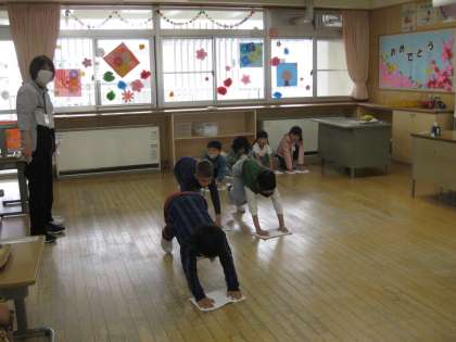 給食を食べた後、自分たちの教室を自分たちできれいにしましょう。