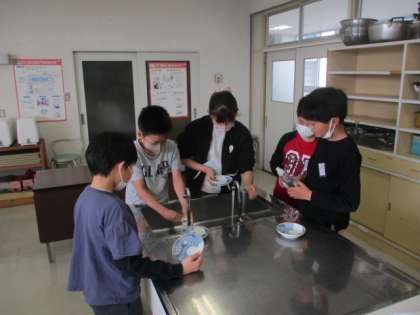 家庭科室探検をした後、最初のお題「皿洗い」をしました。「洗剤の量、多くないかな?」「洗っている間は水を止めよう」皿を一枚洗うにしても、気を付けることがたくさんあります。日頃からお手伝いしている様子が伝わってきました。