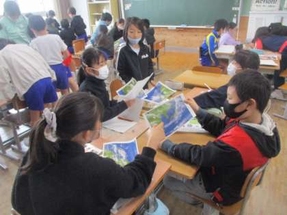 理科では、前回の観察から分かった「雲は西から東に動く」ことを生かし、ここ数日間の雲画像を順番に並び替えました。