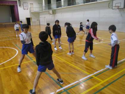 体育は体の動きを高める運動で、柔軟性を生かした活動をしました。