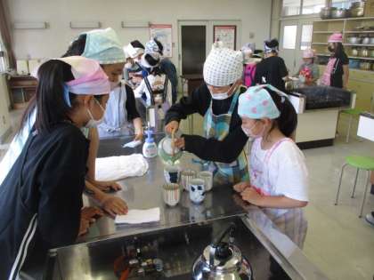 家庭科では、お茶淹れ実習をしました。安全に気を付けておいしいお茶を淹れることができました。おうちでも実践できるかな?