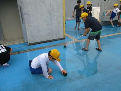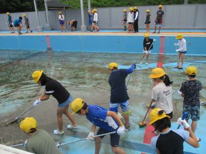 小雨の降る中、プール掃除を行いました。これまで気持ちよくプールを使えたのは、高学年の先輩方が心を込めて掃除してくださったからです。今度は僕たち・私たちの番です。時間いっぱい丁寧に仕事に取り組む姿が印象的でした。みんなのために、ありがとう!