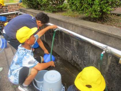 ザリガニつりは…あまり釣れず、悔しい結果となりました。しかし、そのピンチがあったからこそ、子供たちの連係プレーが多く見られました。もしかして、ザリガニはそれをねらっていたのかも…?