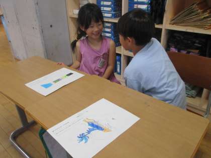 国語科では、自分があったらいいなと思うものについて考えています。ペアと話しながら、自分の考えをよりよいものにしようと頑張っています。