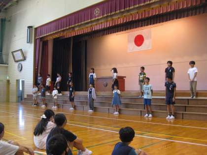長い楽しい夏休みが終わりました。「まだまだ、夏休みをしていたかったな」、「友達みんなに会えてうれしい」などと、久しぶりの学校、教室からにぎやかなふるさとっ子の歓声が聞こえてきました。
