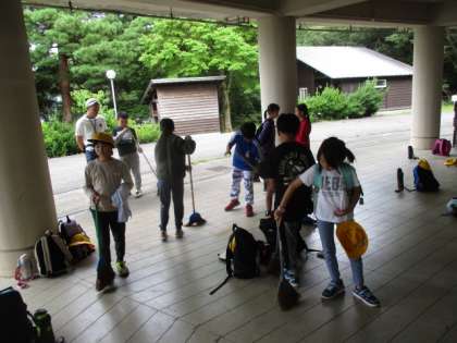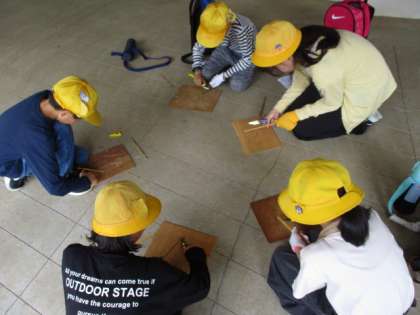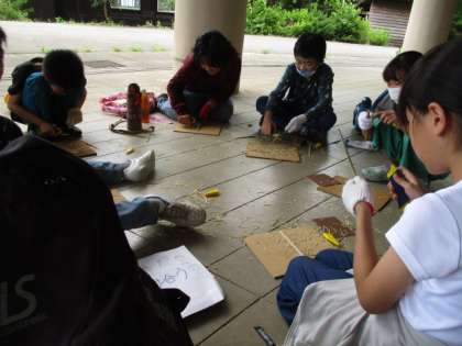 1日目の午後はクラフト製作です。小刀とやすりを使って竹箸をつくりました。デザインにこだわり、じっくり活動していました。後片付けまでばっちりです。2日目の焼きそばを、この箸を使って食べました。