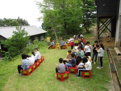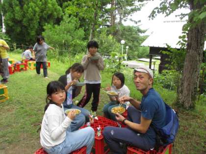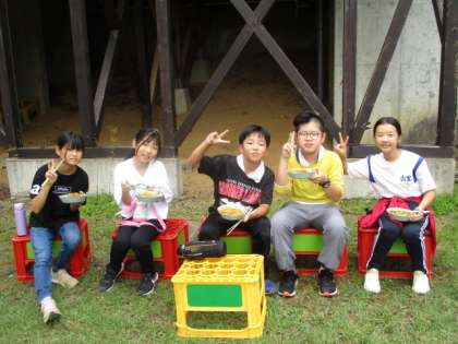 みんなの「おいしい」という声が聞こえてきました。自然の中で、友達と食べる焼きそばは別格です。
