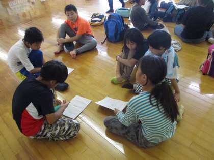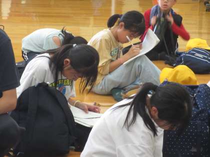 2日間の宿泊学習で、友達と支え合って活動できました。そんな仲間に「ありがとう」。ちょっと照れくさいですが、うれしそうな様子が見られました。