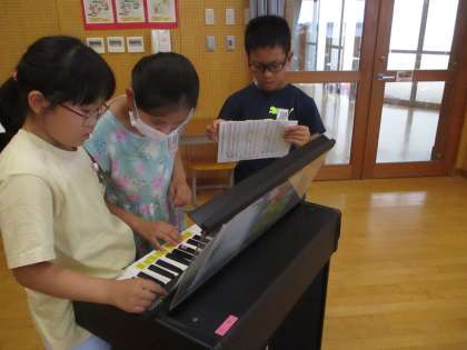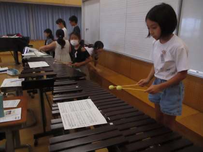 音楽科では、音楽会の練習を始めています。この日は、夏休みに練習していたリコーダー以外の楽器パートを演奏してみました。これから自分のやりたいパートを決め、練習していきます。