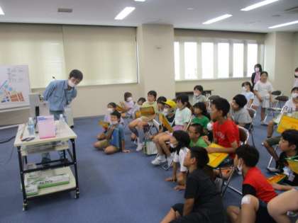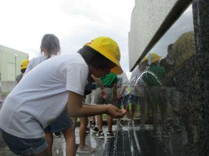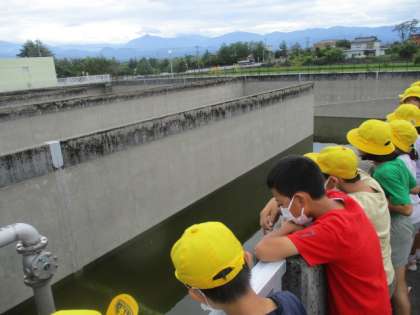 流杉浄水場での様子です。浄水のしくみを学びました。1学期に学習した「水はどこから」の復習をすることができました。