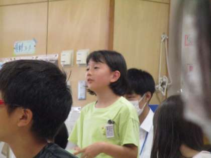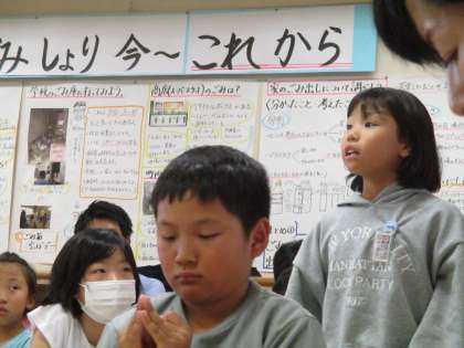 その授業では、一人一人の子供たちが、たくさんの先生方がおられても、4年生の仲間たちと担任の先生との普段の授業と同様に、自分の調べたことをもとに考えたこと、思ったことを話していました。