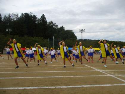 黄団は、明るくかわいらしいダンスが印象的でした。6年生が下級生を盛り上げて全力で応援パフォーマンスをすることができました。