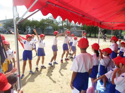 みんなを導いてくれた6年生は、下級生に感謝の言葉や満足感を述べ、下級生を代表して5年生から6年生へお礼と次の運動会への意気込みを伝えました。