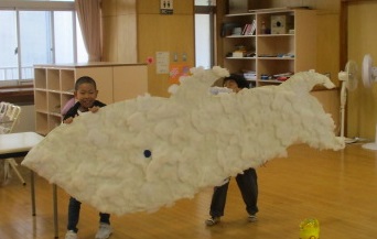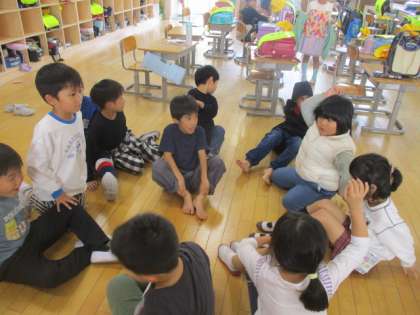 国語科では、くじらぐもを学習しています。くじらぐもや子供達になりきって音読をする姿が見られます。今日の休み時間はハンカチ落としをして楽しんでいました。