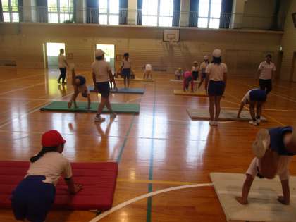 今日はスポーツ協会の方が来られ、マット運動を指導していただきました。