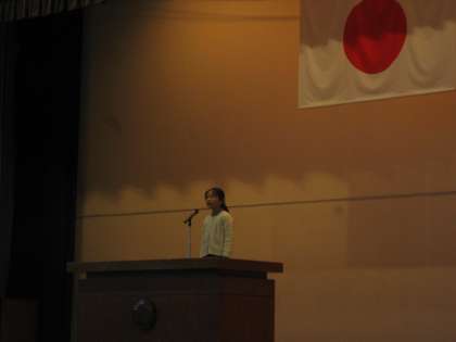 原稿等を見ずに、堂々と全校児童と教職員の前で話すことができ、聞いているみんなから大きな拍手をもらい、嬉しそうでした。