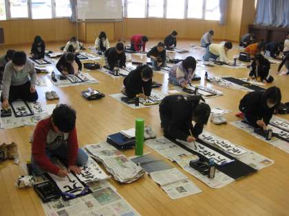 子供たちは、静かな落ち着いた雰囲気を自分たちでつくりながら、一文字一文字ていねいに書き上げていきました。