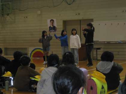 体育主任の先生の話から、先生方の楽しい寸劇?クイズ?が始まりました。