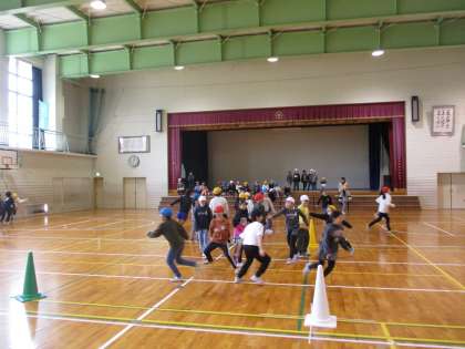 のびのびタイムにスポーツ委員会企画の3・4年生ケイドロ大会が行われました。警察の隙をついて仲間を助けるなど、みんなで協力して運動を楽しむことができました。