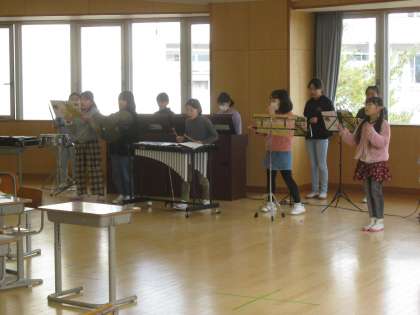 3年生は、女子チームが「お菓子の好きな魔法つかい」、男子チームが「パフ」の曲を教科書の中から選び、演奏を考え練習していました。