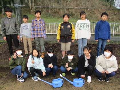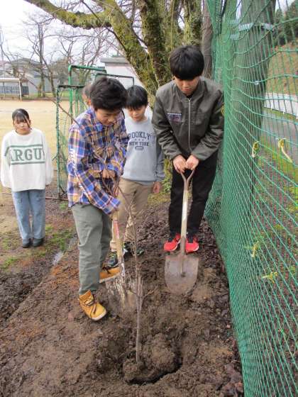 そのお金で、桜の苗木を購入し、環境委員会の子供たちが植樹しました。大きく育ち、きれいな花が咲くといいです。